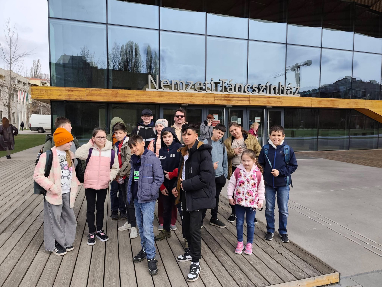 Első állomásunk a Nemzeti Táncszínház volt, ahol a gyerekek egy színes és lendületes táncelőadáson vettek részt a Magyar Nemzeti Táncegyüttes előadásában. Megtekinthették a Mátyás, a világ királya című darabot, amely nagy sikert aratott körükben. A műsort követően különleges élményben volt részük: a színpadon személyesen is találkozhattak a szereplőkkel. A fiúk bátran bemutatták saját tudásukat egy sűrű csapás eltáncolásával, amelyet a művészek nagy elismeréssel, kézfogással jutalmaztak. A közös beszélgetés és egy csoportkép után búcsút vettünk a tánckartól.