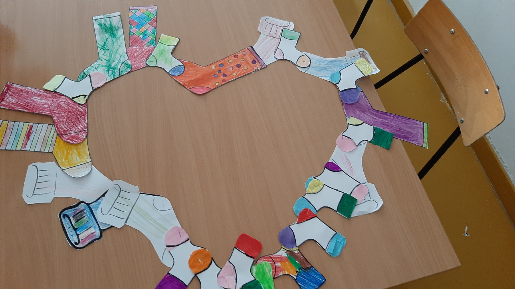 E jeles nap során a tanulóknak lehetőségük volt arra, hogy felemás zoknit készítsenek, majd egy-egy ügyességi játékban részt vegyenek. Ezeket nagyon élvezték a tanulók.  Az elkészített felemás zoknikból egy nagy szívet alkottunk, amelyet felhasználtunk egy közös csoportos fotóhoz is. Külön élmény volt, hogy nagyon sokan megkapták, és megértették azt az üzenetet, hogy ezen a napon felemás zokniban kell jönni az iskolába. Nem zavarta meg ez őket. Itt szeretném megragadni az alkalmat, hogy megköszönjem a szülők támogató hozzáállását.